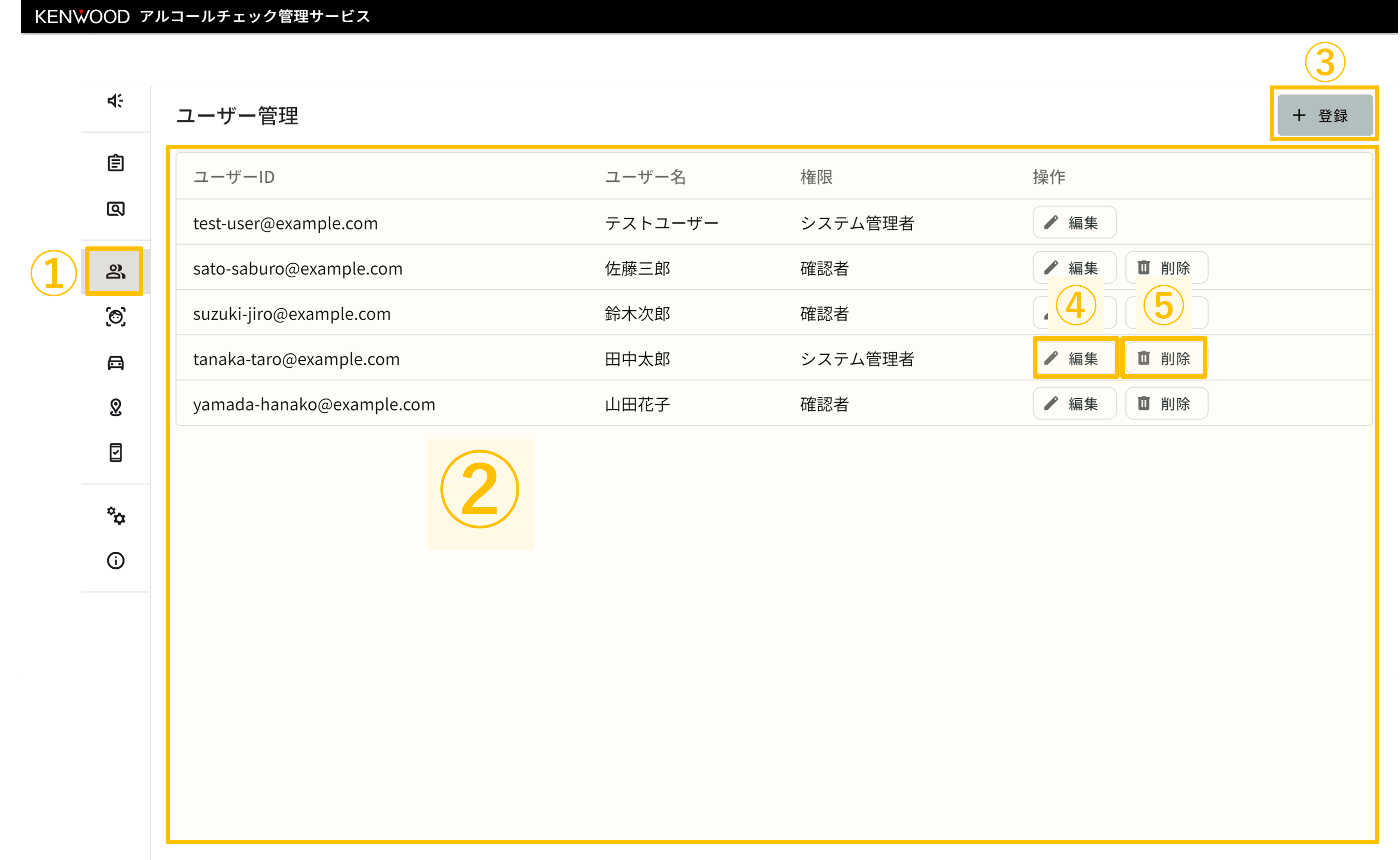 このページでは、当サービスにログインして安全運転管理や点呼管理を行うユーザーを管理する方法について説明します。